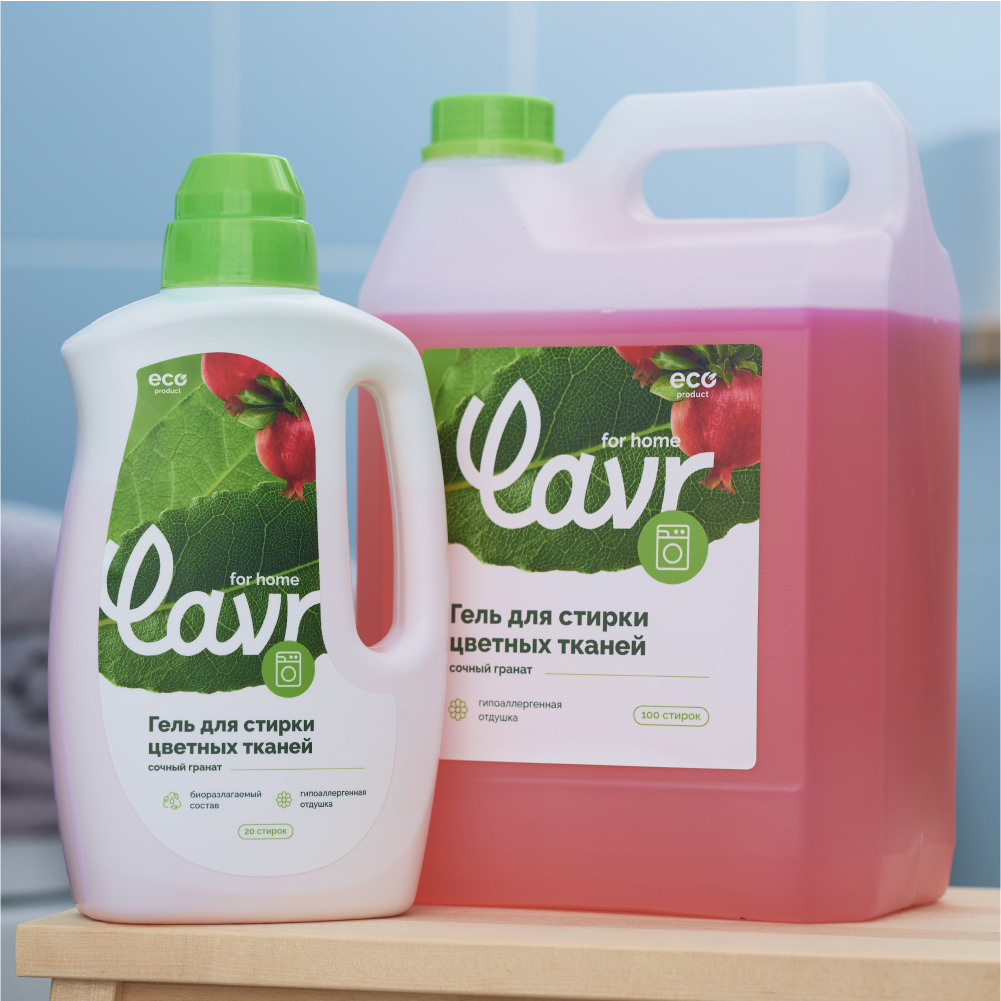 Гель для стирки цветных тканей с гипоаллергенной отдушкой Сочный гранат LAVR for home, 5 л / 3306